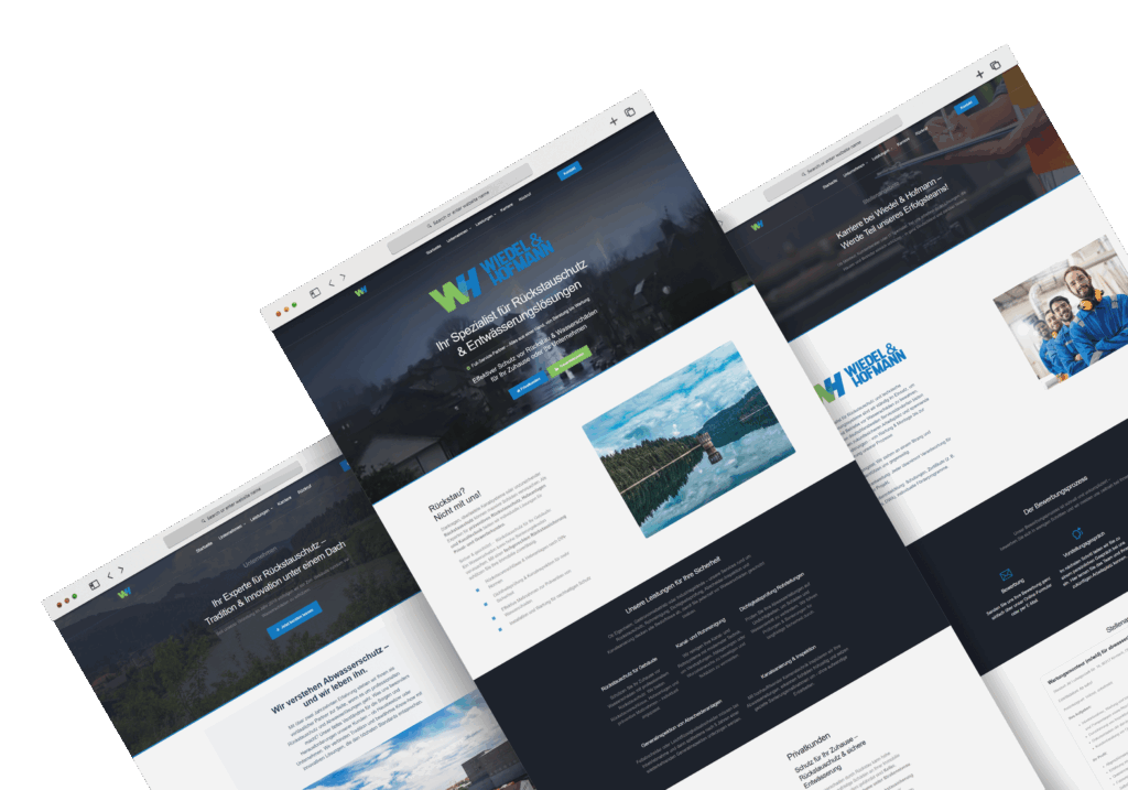 Von der Startseite bis zu den Detailseiten für Produkte und Dienstleistungen zeigt das Webdesign von Wiedel & Hofmann eine klare Struktur und intuitive Navigation. Die Besucher der Website werden sofort von einem sauberen, professionellen Layout begrüßt, das durch die geschickte Verwendung von Farben und Typografie unterstützt wird. Jedes Element der Website ist darauf ausgelegt, das Nutzererlebnis zu verbessern und gleichzeitig die Kernbotschaften des Unternehmens zu vermitteln.